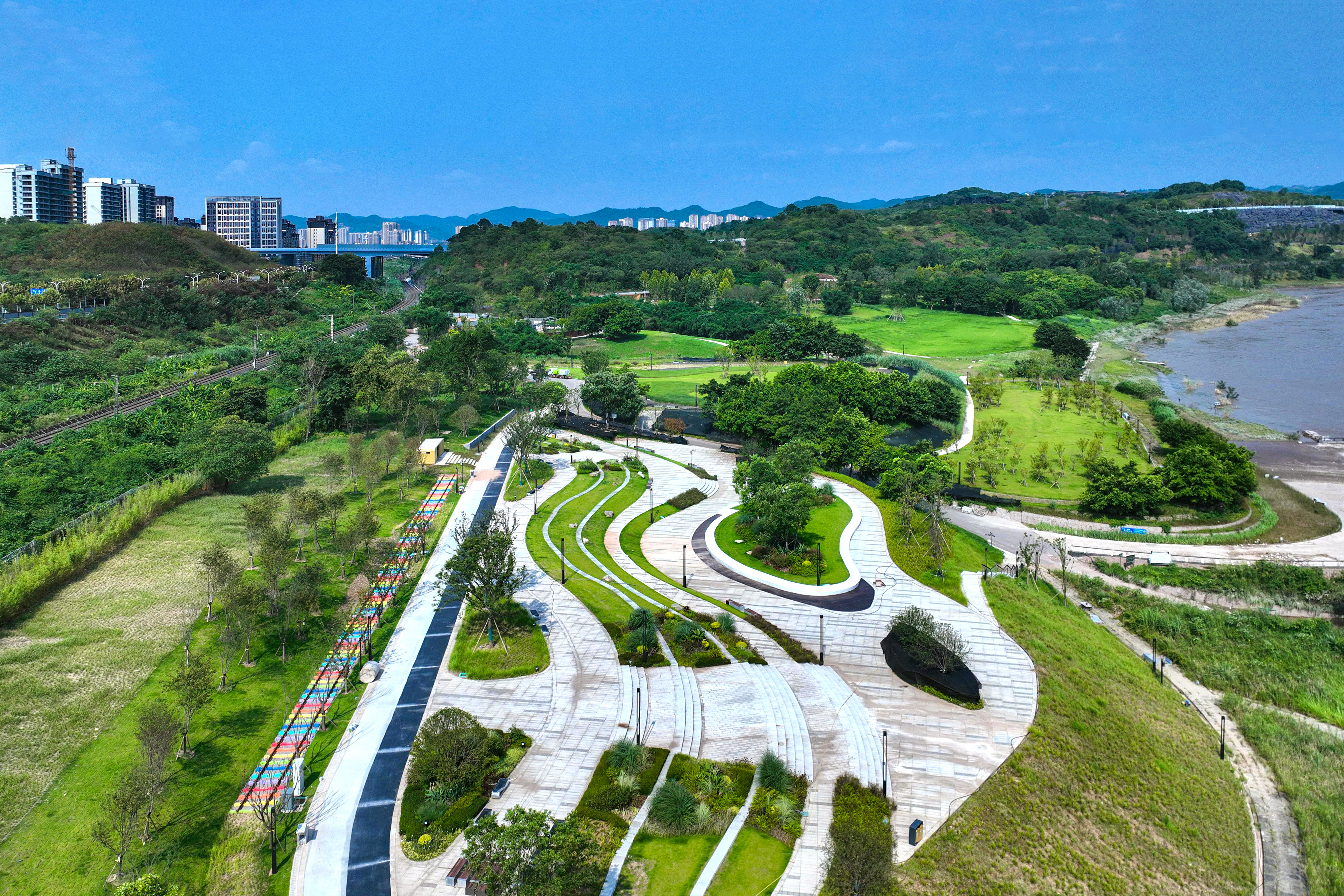 中冶建工承建的重慶“兩江四岸”治理提升長(zhǎng)江北岸線(xiàn)延伸工程釣魚(yú)嘴濱江段項(xiàng)目,是重慶市重點(diǎn)工程,也是“兩江四岸”治理提升重點(diǎn)項(xiàng)目,全長(zhǎng)約4.2公里,通過(guò)微改造,巧妙利用現(xiàn)有草海、森林、江灘等資源,彰顯原生態(tài)自然景觀,使生態(tài)美景連點(diǎn)成線(xiàn),讓群眾享受更多開(kāi)窗見(jiàn)景、推門(mén)見(jiàn)綠的城市空間,成為全國(guó)各地增植補(bǔ)綠、打造生態(tài)宜居城市的典范。