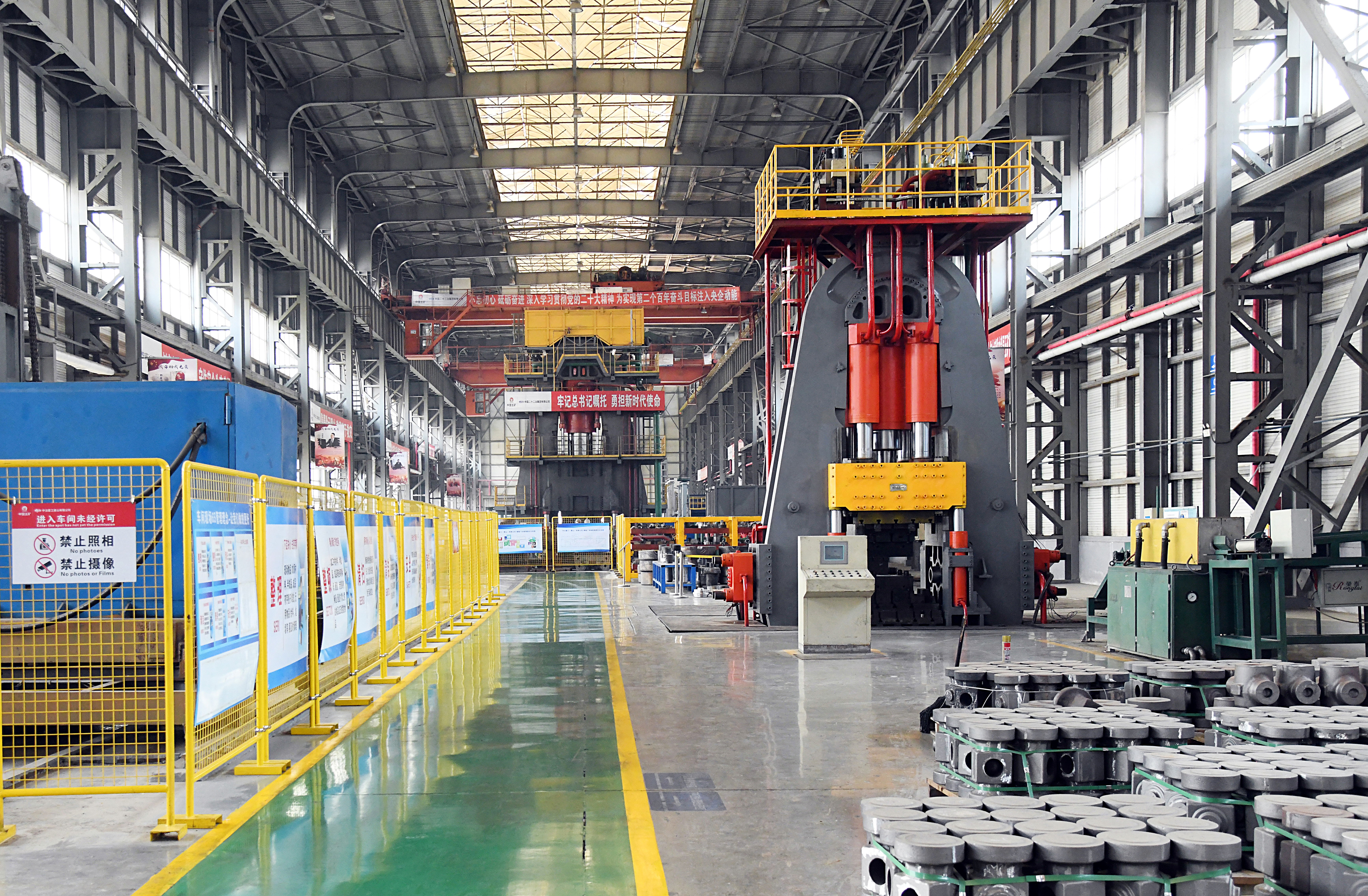 由中國(guó)二十二冶生產(chǎn)的重型壓機(jī)及產(chǎn)線(xiàn)擁有預(yù)應(yīng)力鋼絲纏繞、特重型設(shè)備原位安裝、厚板焊接等核心技術(shù),產(chǎn)品涵蓋(多向)模鍛液壓機(jī)、板片成型液壓機(jī)、換熱片壓機(jī)、海綿鈦壓機(jī)、特色中小型壓機(jī)等工藝生產(chǎn)線(xiàn)及配套設(shè)備。產(chǎn)品榮獲國(guó)家科學(xué)技術(shù)進(jìn)步獎(jiǎng)、國(guó)家優(yōu)質(zhì)工程獎(jiǎng)、冶金科學(xué)技術(shù)獎(jiǎng)、魯班獎(jiǎng)等多項(xiàng)榮譽(yù)。
